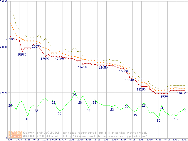 U6 (5400rpm,UltraATA/100 2MB 40GB/Platter)の最安値推移