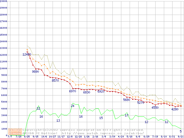 Socket A (Morgan,PGA,FSB 200MHz,L2 64KB)の最安値推移