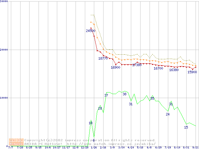 Pentium 4 1.60A GHz リテールパッケージの価格推移