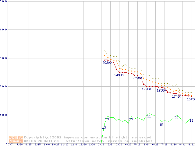 Athlon MP 1800+ (1.53GHz) リテールパッケージの価格推移