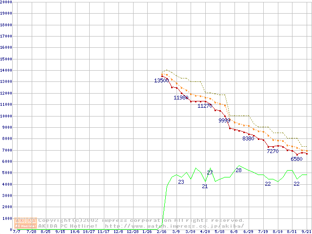 Duron 1.3GHz リテールパッケージの価格推移