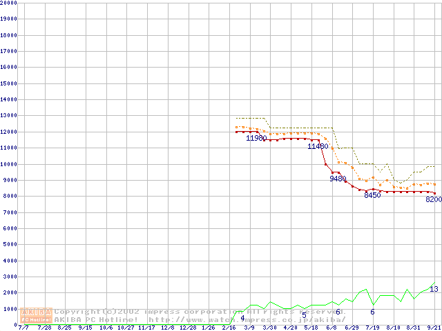 MHRシリーズ (9.5mm,4200rpm,UltraATA/100,2MB,流体軸受,20GB/Platter)の最安値推移