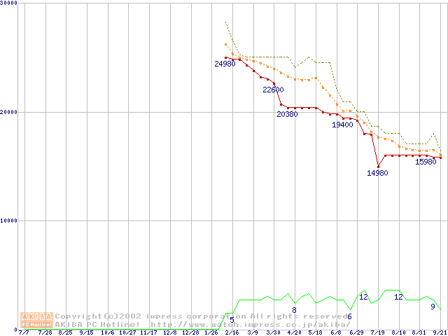 MHRシリーズ (9.5mm,4200rpm,UltraATA/100,2MB,流体軸受,20GB/Platter)の最安値推移