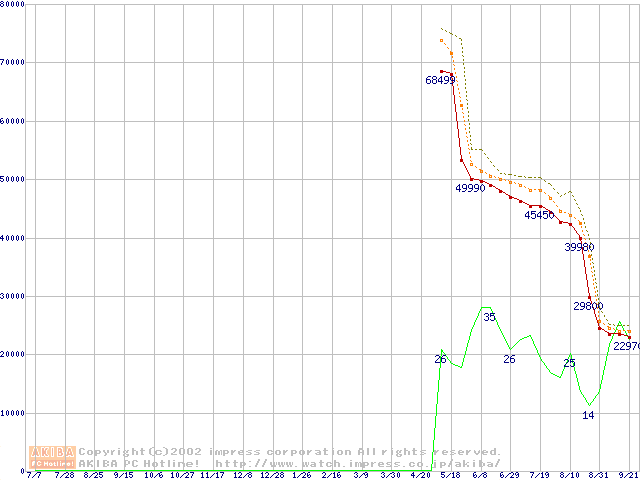 Pentium 4 2.4B GHz リテールパッケージの価格推移