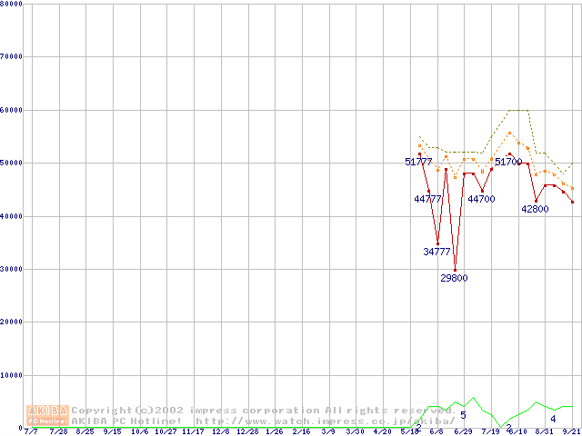PC2100(DDR266) DDR SDRAM DIMM(CL 2.5)の最安値推移