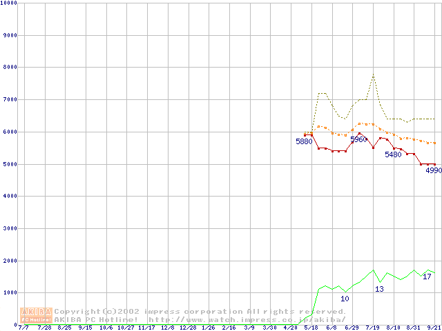 メモリ主要製品(最安値5千円未満)の最安値推移