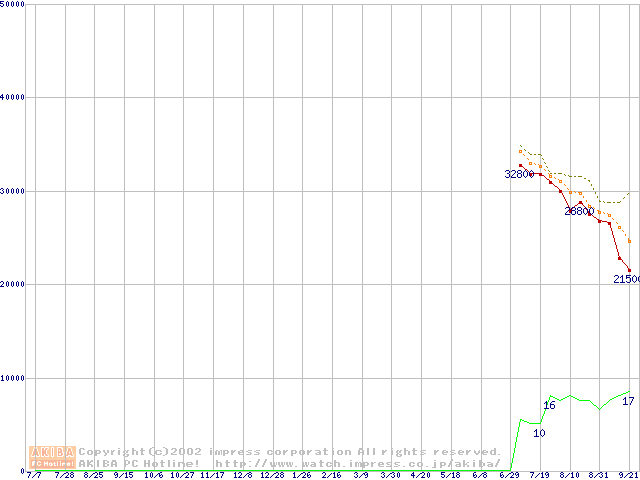 MKシリーズ (9.5mm,5400rpm,16MB,流体軸受,20GB/Platter)の最安値推移