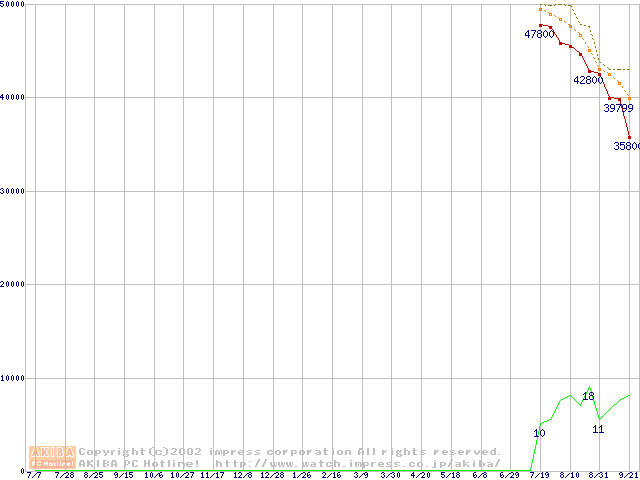 2.5インチHDD主要製品(最安値3万円以上)の最安値推移