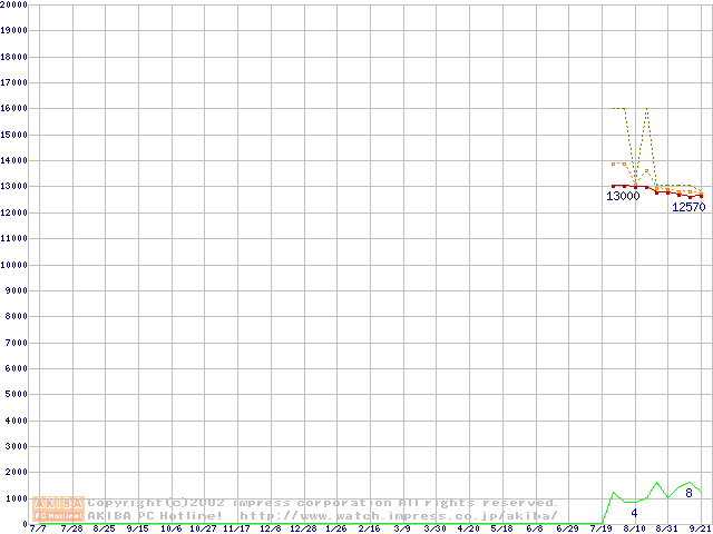 DK23DAシリーズ (9.5mm,4200rpm,流体軸受,20GB/Platter)の最安値推移