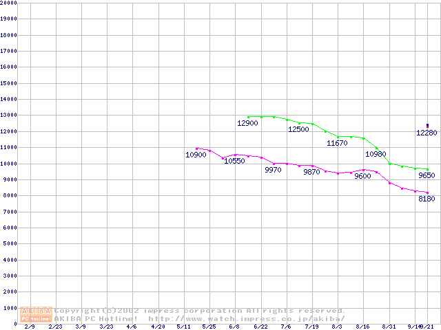 | [↑前グラフ]: | Slot 1 (SECC2,FSB 100MHz,L2 256KB)の最安値推移 |