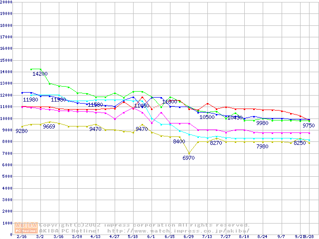 | [↑前グラフ]: | 2.5インチHDD主要製品の最安値推移 |