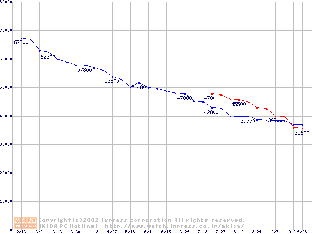 | [↓次グラフ]: | 2.5インチHDD 10GB~20GB未満(9.5mm厚)の最安値推移 |