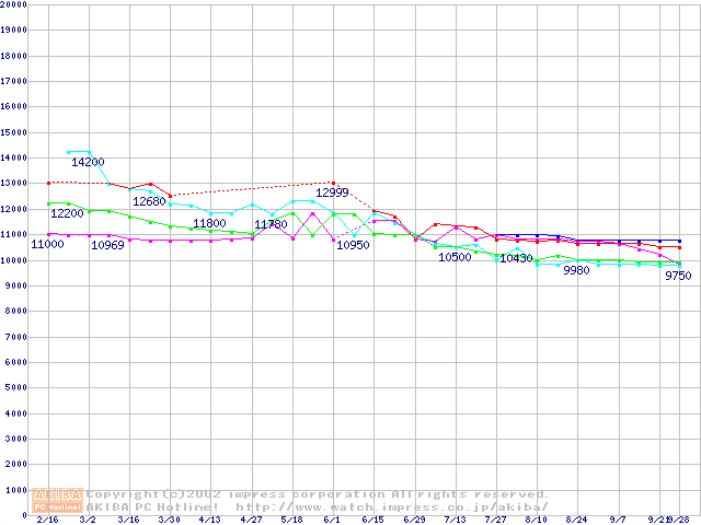 | [↑前グラフ]: | 2.5インチHDD 10GB~20GB未満(9.5mm厚)の最安値推移 |