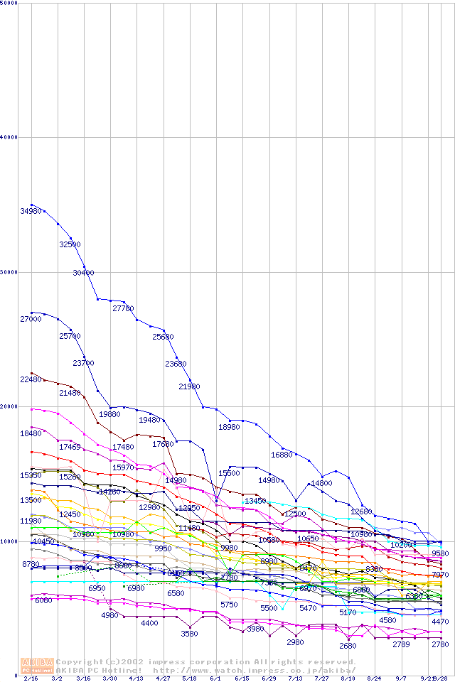 CPU主要製品(最安値1万円~2万円未満)の最安値推移