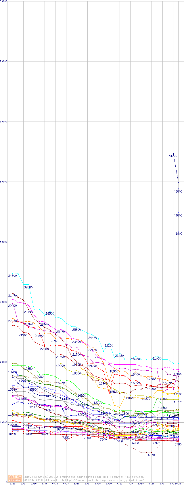 HDD 10GB~20GB未満(5400rpmクラス)の最安値推移