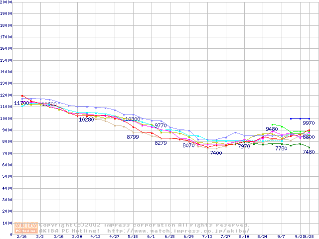 | [↑前グラフ]: | HDD 30GB~40GB未満(7200rpmクラス)の最安値推移 |