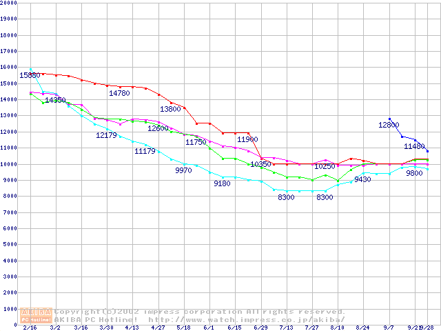 | [↑前グラフ]: | HDD 40GB~50GB未満(7200rpmクラス)の最安値推移 |