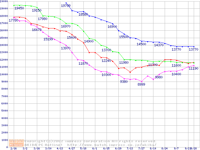 | [↓次グラフ]: | HDD 100GB以上(7200rpmクラス)の最安値推移 |