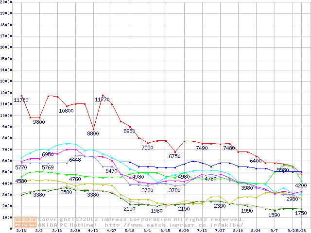 メモリ主要製品(最安値5千円~1万円未満)の最安値推移