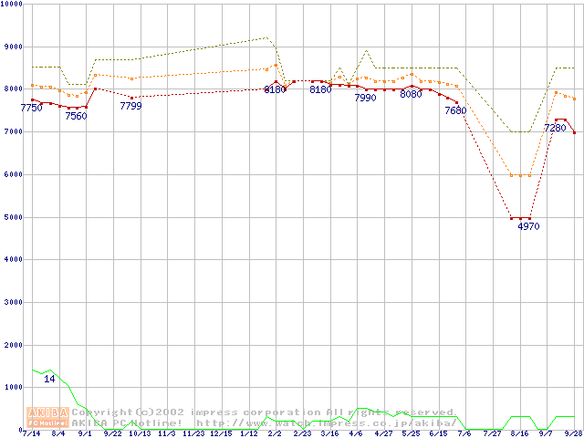 U5 (5400rpm,UltraATA/100 512KB)の最安値推移
