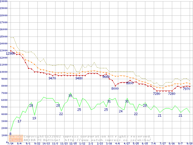 U6 (5400rpm,UltraATA/100 2MB 40GB/Platter)の最安値推移