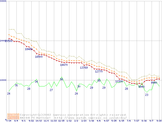 Barracuda ATA IV (7200rpm,UltraATA/100,2MB,40GB/Platter,流体軸受)の最安値推移