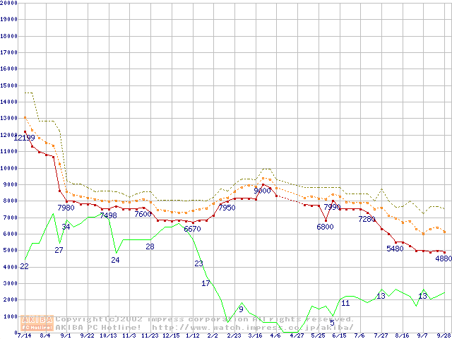 Celeron 900MHz FC-PGA リテールパッケージの価格推移