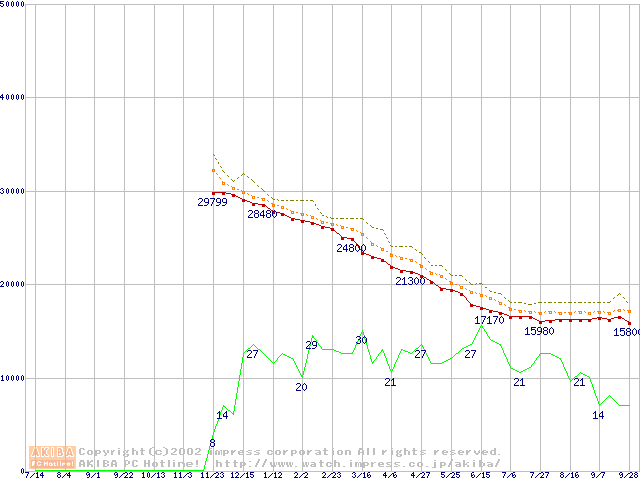 DiamondMax D540X (5400rpm,UltraATA/133,40GB/Platter)の最安値推移