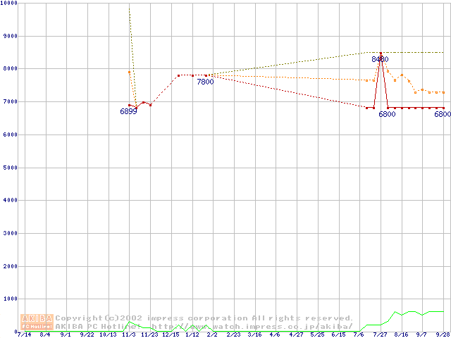 Socket A (OPGA,FSB 200MHz,L2 256KB)の最安値推移