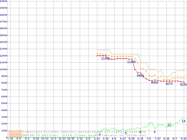 MHRシリーズ (9.5mm,4200rpm,UltraATA/100,2MB,流体軸受,20GB/Platter)の最安値推移