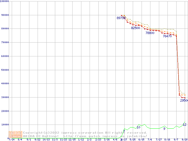 Socket 603 (micro-PGA,L2 512KB,Hyper-Threading,Prestonia)の最安値推移