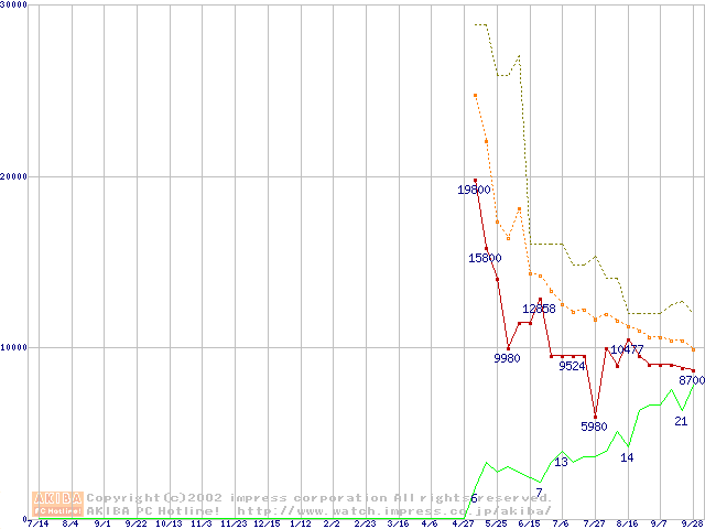 メモリ主要製品の最安値推移
