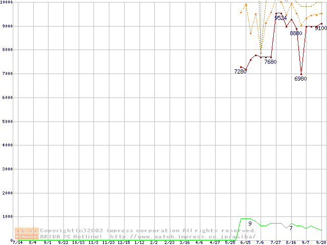 PC2100(DDR266) DDR SDRAM DIMM(CL 2.0) ECC対応 Registeredタイプの最安値推移