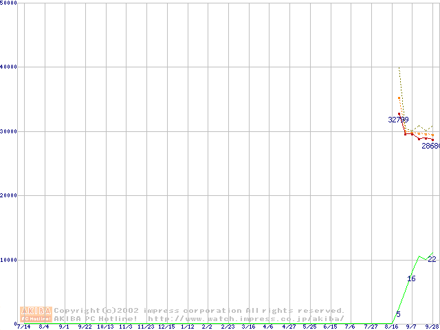 Socket 478 (micro-PGA,FSB 400MHz,L2 512KB,Northwood)の最安値推移