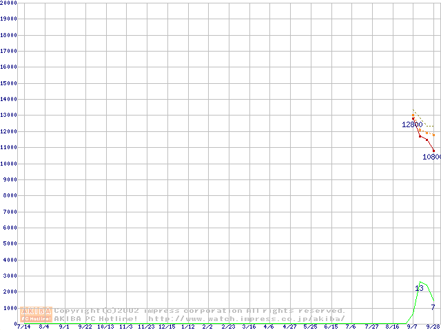 DiamondMax Plus 9 (7200rpm,UltraATA/133,2MB,80GB/Platter,流体軸受)の最安値推移