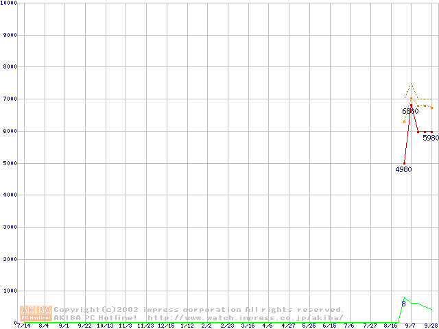 Socket A (Spitfire,PGA,FSB 200MHz,L2 64KB,1.4V)の最安値推移