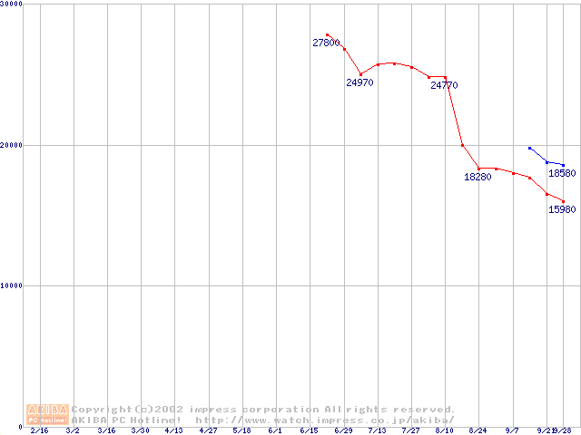 | [↓次グラフ]: | Socket A (Palomino,OPGA,FSB 266MHz,L2 256KB)の最安値推移 |