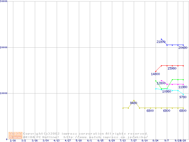 | [↑前グラフ]: | Socket A (Palomino,OPGA,FSB 266MHz,L2 256KB)の最安値推移 |