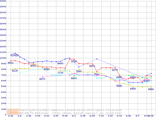 | [↓次グラフ]: | Socket A (Thoroughbred,OPGA,FSB 266MHz,L2 256KB)の最安値推移 |