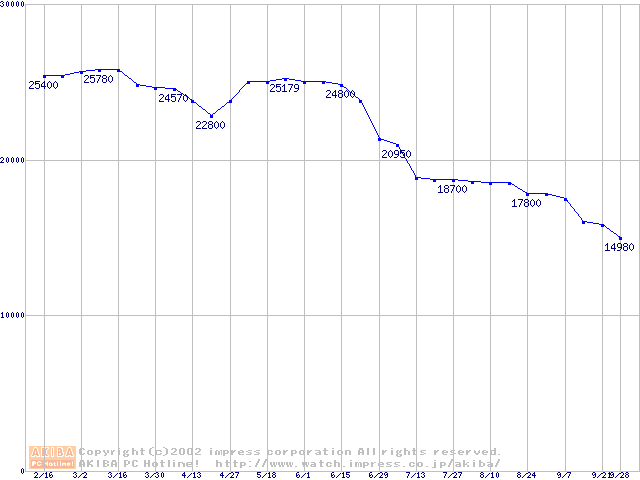| [↓次グラフ]: | Socket 478 (micro-PGA,FSB 400MHz,L2 128KB,Willamette)の最安値推移 |