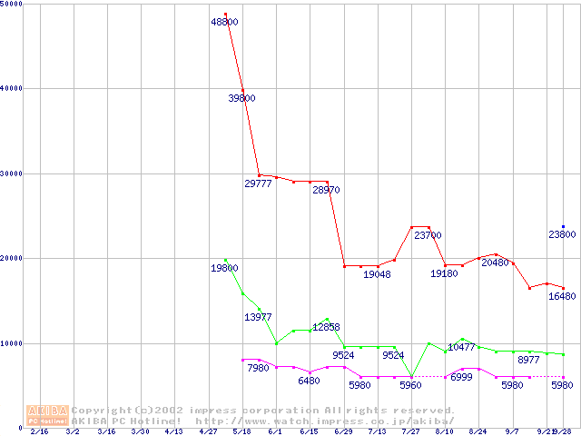 | [↑前グラフ]: | PC3000(DDR366) DDR SDRAM DIMMの最安値推移 |