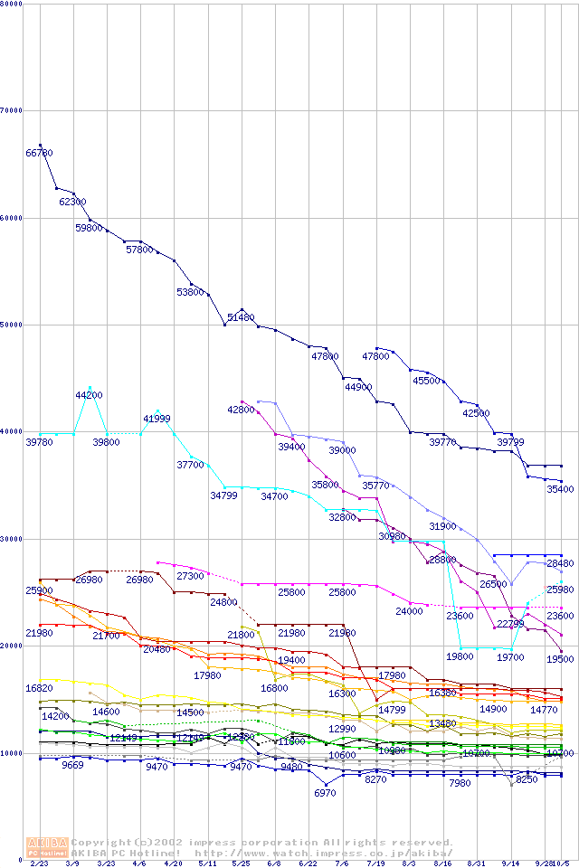 2.5インチHDD 60GB~80GB未満(12.5mm厚)の最安値推移