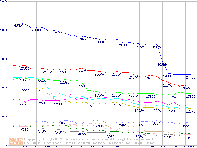 Socket 370・FSB 133MHzの最安値推移