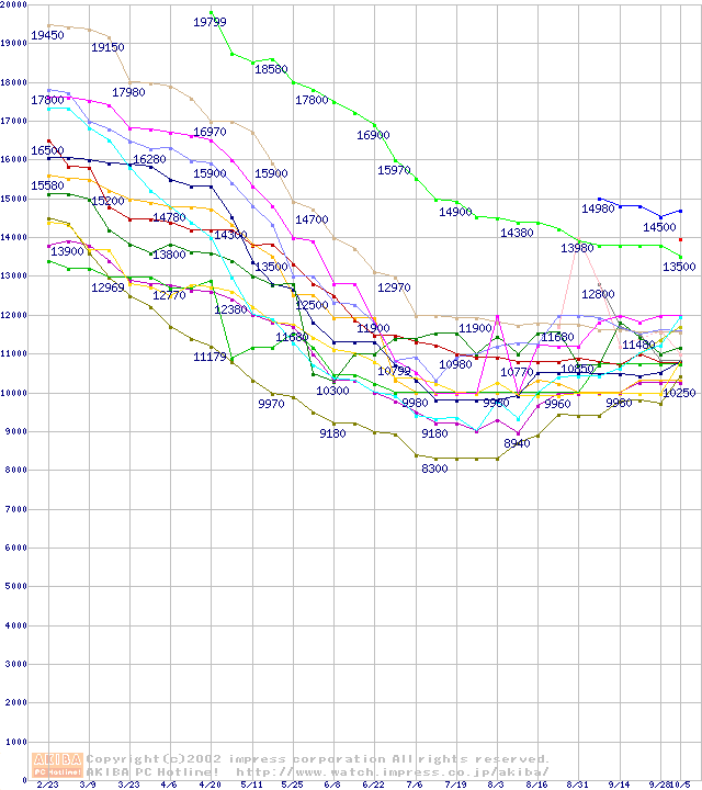 HDD主要製品(最安値1万5千円~2万円未満)の最安値推移