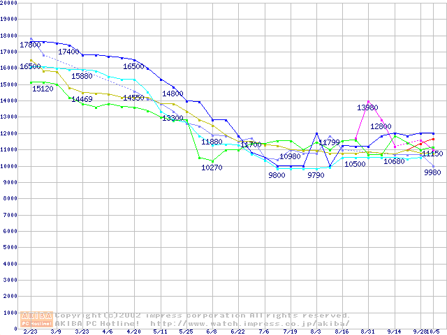| [↓次グラフ]: | HDD 100GB以上(5400rpmクラス)の最安値推移 |