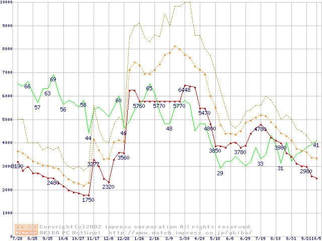 メモリ主要製品の最安値推移