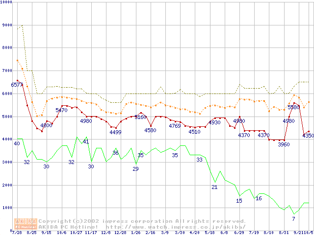 PC800-45 DRDRAM RIMMの最安値推移