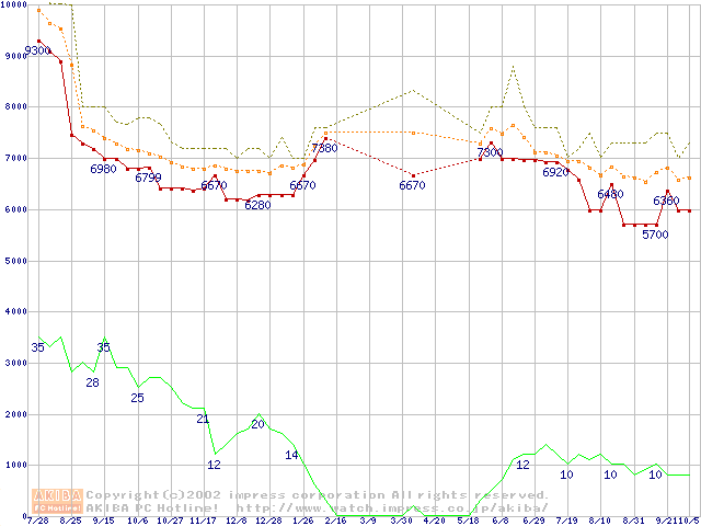 Celeron 850MHz FC-PGA リテールパッケージの価格推移