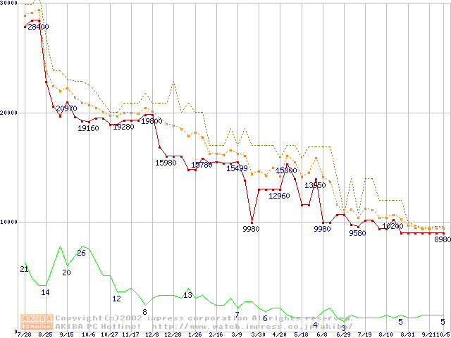 Socket A (Palomino,PGA,FSB 200MHz,L2 256KB)の最安値推移