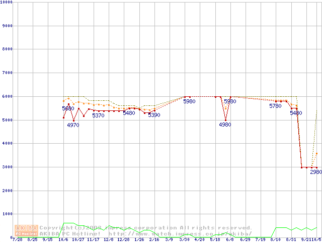 Socket A (Spitfire,PGA,FSB 200MHz,L2 64KB,1.4V)の最安値推移